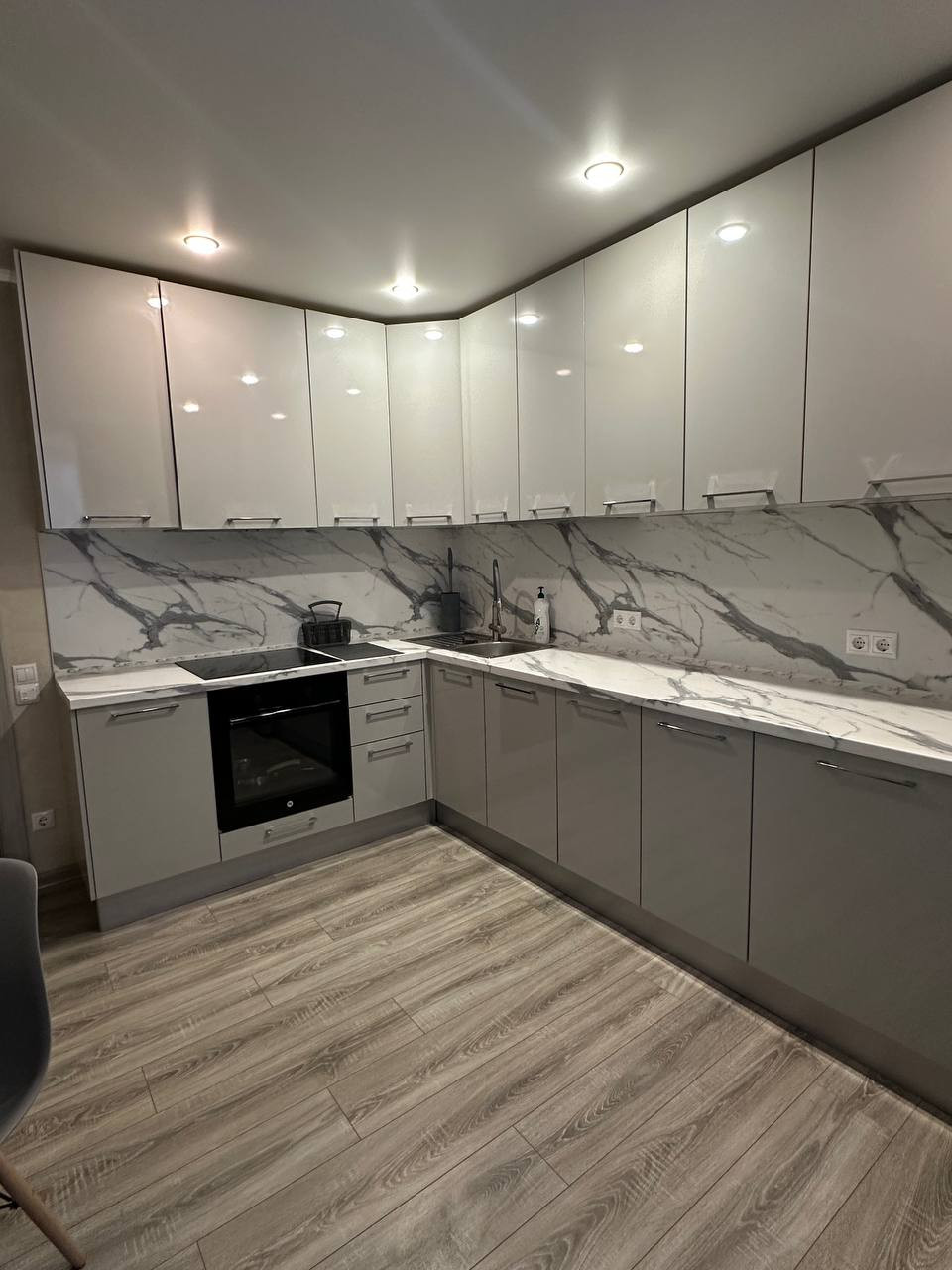 Кухонный гарнитур со встроенной техникой.