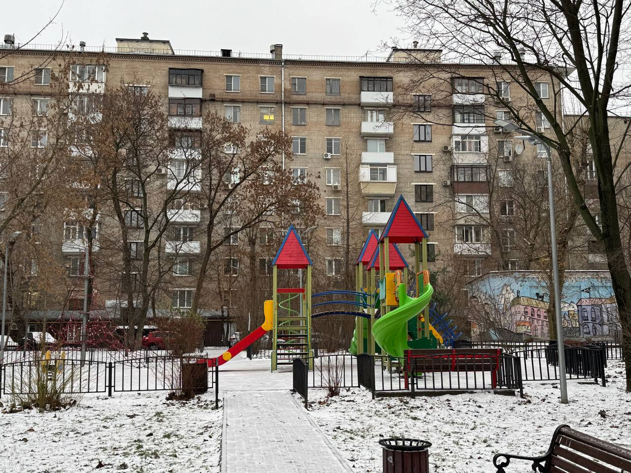 Зелёный, ухоженный двор для прогулок и отдыха.